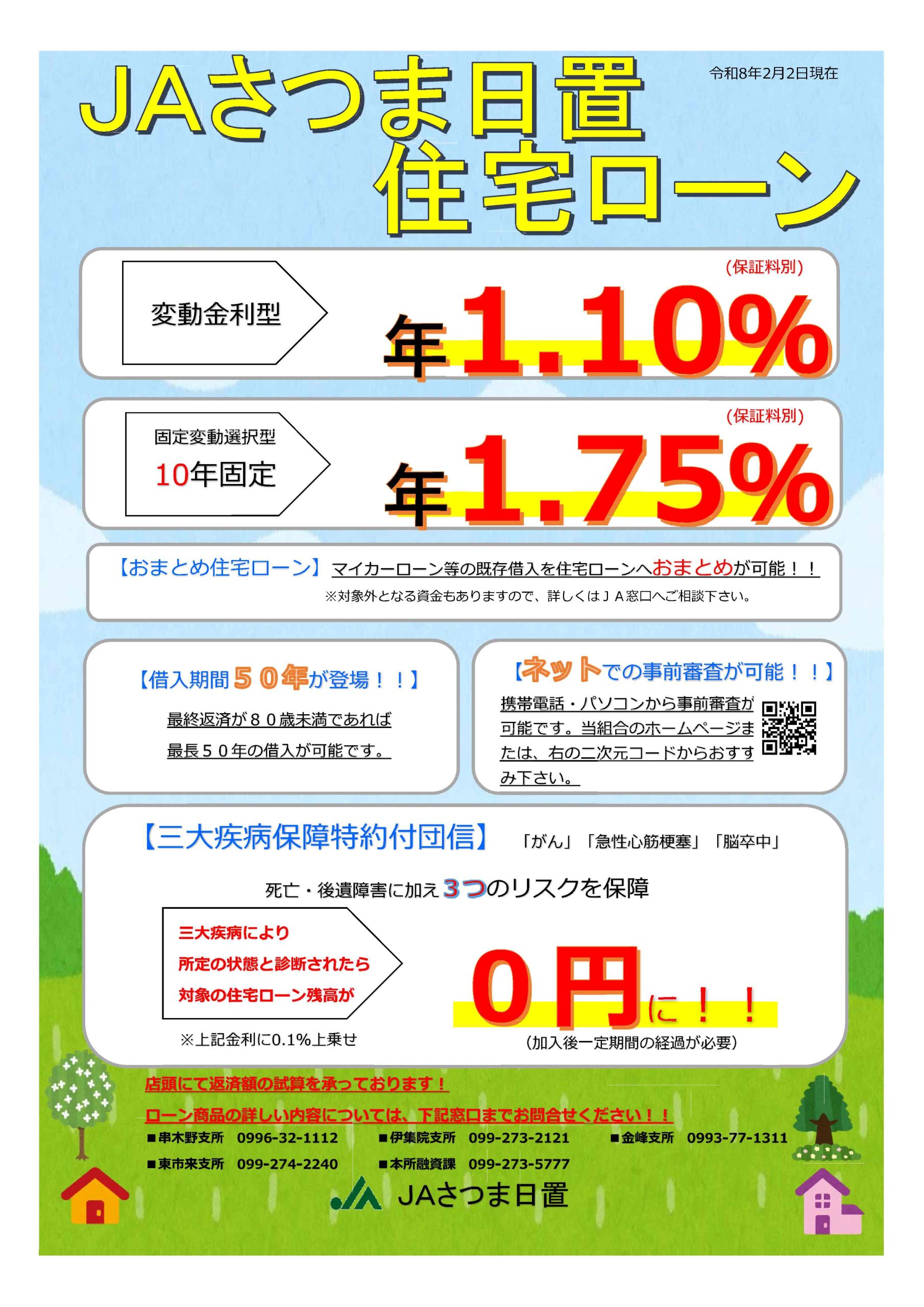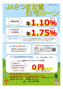 固定変動型10年固定は年1.75%、変動金利型は年1.10%です。