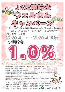 JA定期貯金ウェルカムキャンペーン を実施いたします。
