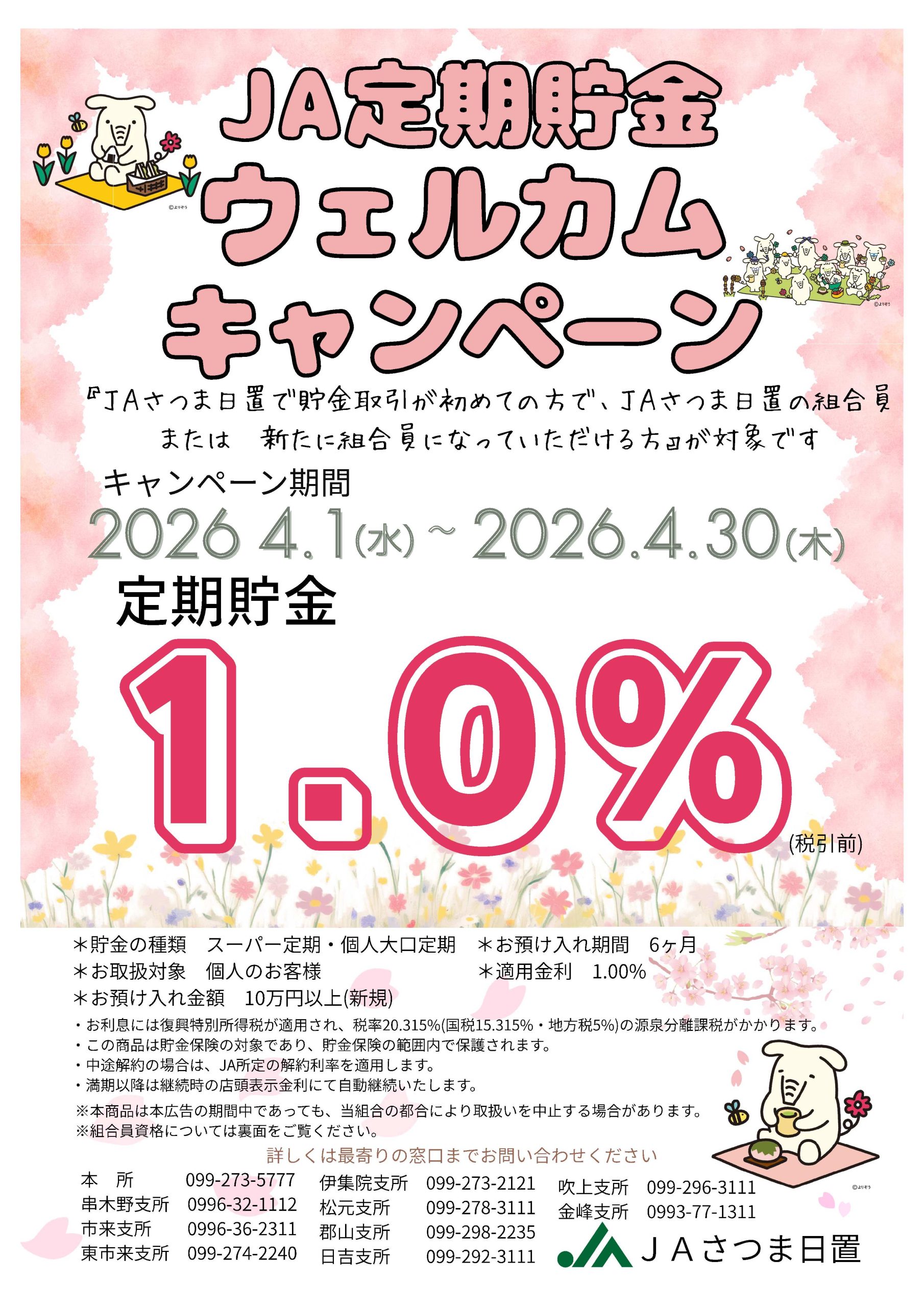 *対象:JAさつま日置で貯金取引が初めての方で、JAさつま日置の組合員、または新たに組合員になっていただける方