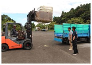 23名の畜産農家が約42トンの粗飼料を引き取りに訪れました。JAは粗飼料集合販売を年3回行っています。