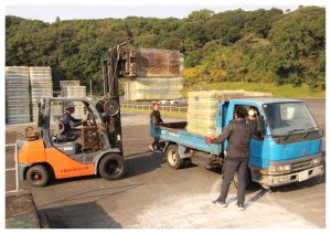 JAさつま日置は11月17日、輸入粗飼料(乾牧草)の集合販売を日置市の鹿児島中央家畜市場で行いました。 30人の畜産農家が約54トンの粗飼料を引き取りました。JAは粗飼料集合販売を年3回行っています。 県経済連と連携した一括購入と、畜産農家の予約注文、直接受け取りでコスト削減を図り、特別価格で提供しています。